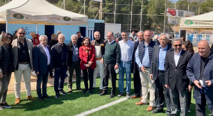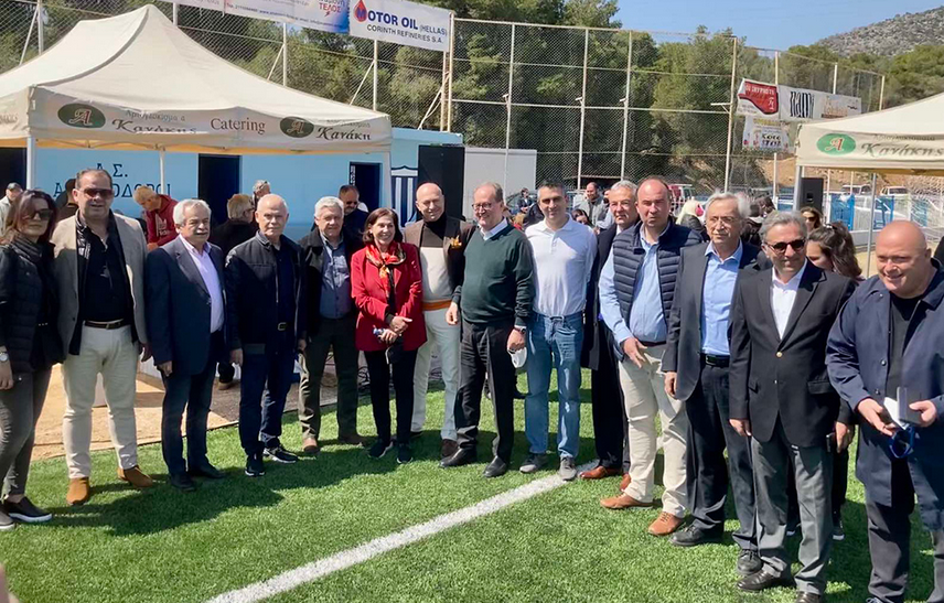 “Είμαι πολύ ευχαριστημένος γιατί αυτά που λέμε τα κάνουμε πράξη -και η πολτική είναι αποτέλεσμα, είναι πράξη” τόνισε, μεταξύ άλλων, ο περιφερειάρχης Πελοποννήσου Παναγιώτης Νίκας μιλώντας σήμερα Σάββατο 26 Μαρτίου, στην εκδήλωση εγκαινίων του γηπέδου στους Αγίους Θεοδώρους Κορινθίας, έργου για το οποίο η Περιφέρεια διέθεσε περί τις 350.000 ευρώ.