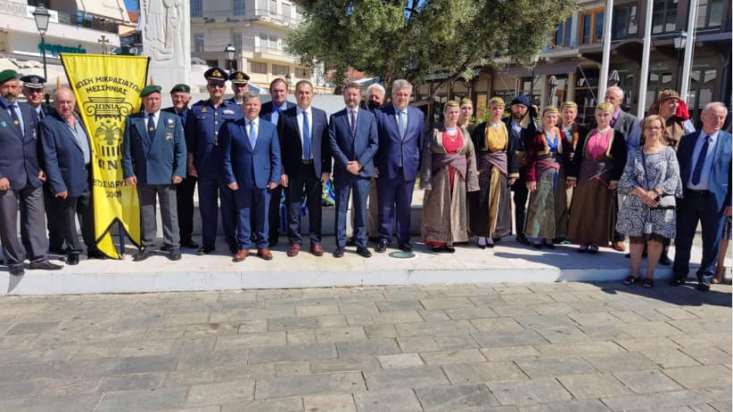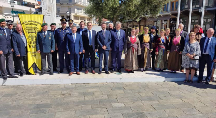 Εν συνεχεία οι Αρχές κατέθεσαν στεφάνια στο ηρώον της Πλατείας 23ης Μαρτίου. Άγημα της 120 ΠΕΑ απέδωσε τιμές, ενώ την εκδήλωση κάλυψε η Δημοτική Φιλαρμονική Καλαμάτας.