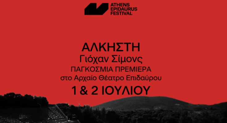Ένα αλλόκοτο έργο: μια γυναίκα θυσιάζει τη ζωή της για να σώσει τη ζωή του ετοιμοθάνατου άντρα της. Θρήνοι, διαπραγματεύσεις, διαφωνίες· ποιος δεν φοβάται να πεθάνει, ποιος δικαιούται περισσότερο να ζήσει. Εντέλει, ο Ηρακλής κατεβαίνει στον Άδη για να φέρει πίσω την Άλκηστη, μόνο που τώρα η ηρωίδα είναι μια ξένη για την οικογένειά της. Η μετάκληση στην Επίδαυρο του ιδρυτή του διάσημου Theater Hollandia (1985) και από τους πρωτεργάτες της ευρωπαϊκής θεατρικής πρωτοπορίας, Ολλανδού Γιόχαν Σίμονς είναι γεγονός διεθνούς εμβέλειας. Ο Σίμονς, που επισκέφθηκε πρώτη φορά στο Φεστιβάλ το 2002 με τις Βάκχες του Ευριπίδη και επανήλθε το 2009 με το Καζιμίρ και Καρολίνα του Χόρβατ σε συν-σκηνοθεσία με τον συνεργάτη του Paul Koek, είναι γνωστός για την μουσική προσέγγισή του στα κείμενα και την εντυπωσιακά μινιμαλιστική αισθητική του. Στη νέα του αυτή παράσταση, φωτίζει την Άλκηστη του Ευριπίδη με όχημα τη μουσική της ομώνυμης όπερας του Γκλουκ τοποθετώντας τέσσερις τραγουδιστές και ένα εκκλησιαστικό όργανο στη θέση του Χορού.