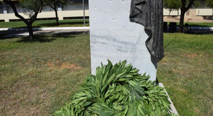 Στις 10.30 π.μ., στο Ηρώον Ελλήνων και Κυπρίων Φονευθέντων και Αγνοουμένων (Διοικητήριο) θα ακολουθήσει τελετή απόδοσης τιμής σε όσους αγωνίσθηκαν στην Κύπρο κατά των στρατευμάτων του «Αττίλα» και ιδιαιτέρως προς τους αγνοουμένους, με το εξής πρόγραμμα:
