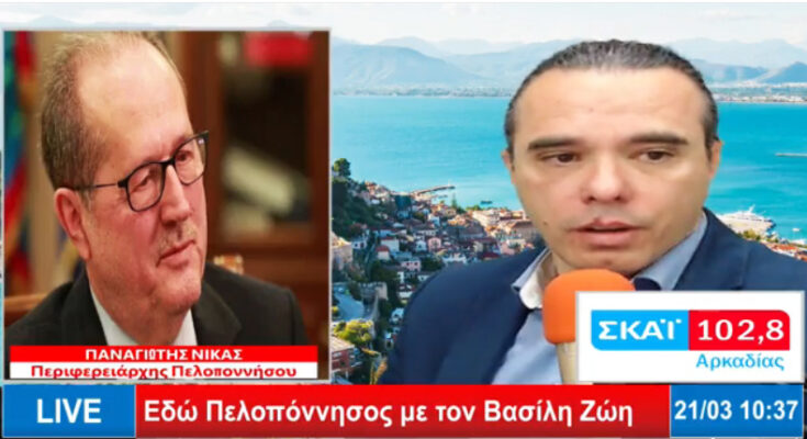 Ο περιφερειάρχης Πελοποννήσου, κ. Παναγιώτης Νίκας μίλησε σήμερα στην εκπομπή “Εδώ Πελοπόννησος” και στον Βασίλη Ζώη για την σύνδεση της Αργολίδας με τον Αυτοκινητόδρομο Α7, έργο το οποίο αναμένεται να ξεκινήσει άμεσα.