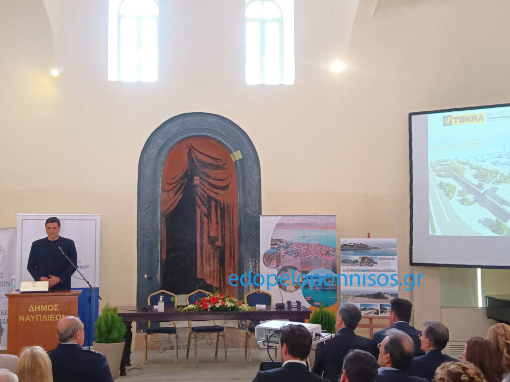 Κατά τη σημερινή εκδήλωση, στην μεγάλη σημασία του συγκεκριμένου έργου για το Ναύπλιο, την Αργολίδα, αλλά και την ανατολική Πελοπόννησο, αναφέρθηκαν στους χαιρετισμούς τους, ο υπουργός Τουρισμού Βασίλης Κικίλιας, ο πρόεδρος του Δημοτικού Λιμενικού Ταμείου Ναυπλίου Τάσος Ζαφείρης, ο δήμαρχος Ναυπλιέων Δημήτρης Κωστούρος, καθώς και ο πρόεδρος και διευθύνων σύμβουλος του παραχωρησιούχου -της ΤΕΚΑΛ Α.Ε.- Παναγιώτης Ψαλτάκος, ενώ ακολούθησε η παρουσίαση του σχεδιασμού από το στέλεχος της πιο πάνω εταιρείας Χριστιάνα Ψαλτάκου.