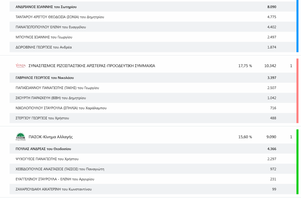 Αποτελέσματα στην Αργολίδα με ενσωμάτωση του 92,79% των σταυρών – Ποιοι εκλέγονται 22/05/202322/05/2023 - by ΕΔΩ ΠΕΛΟΠΟΝΝΗΣΟΣ - Αφήστε ένα σχόλιο Γιάννης Ανδριανός (ΝΔ) , Γιώργος Γαβρήλος(ΣΥΡΙΖΑ) και Ανδρέας Πουλάς (ΠΑΣΟΚ) οι βουλευτές που εκλέγονται στην Αργολίδα – Ενσωμάτωση σταυρών σε 206 από 222 εκλογικά τμήματα