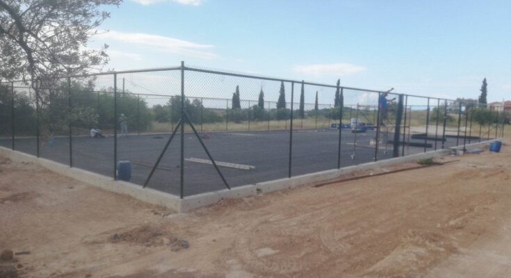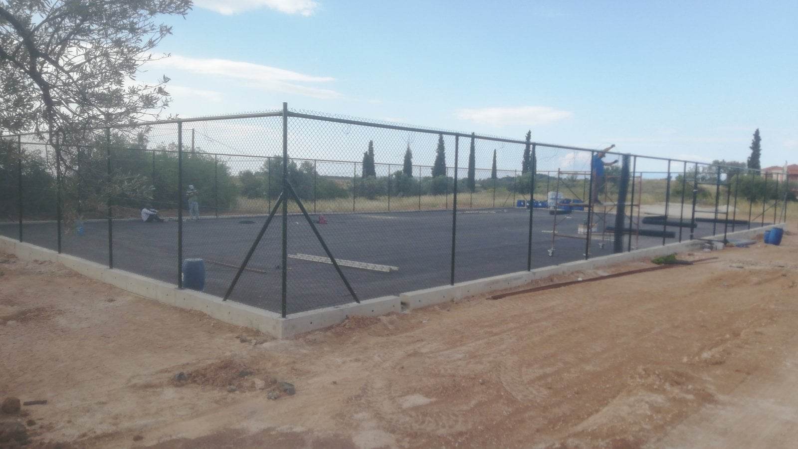 Ταυτόχρονα ολοκληρώνεται η κατασκευή ενός γηπέδου τένις στο κτήμα δωρεάς Κώστα Δημότση “Έλληνα”, σύμφωνα με όλες τις εκδοθείσες άδειες, σε σημείο το οποίο το εγκεκριμένο αρχιτεκτονικό σχέδιο της ΓΓΑ περιγράφει ως “ΑΙΘΡΙΟΣ ΑΓΩΝΙΣΤΙΚΟΣ ΧΩΡΟΣ” και η χρηματοδότησή της γίνεται μέσω της γνωστής ευγενικής χορηγίας δωρητή: