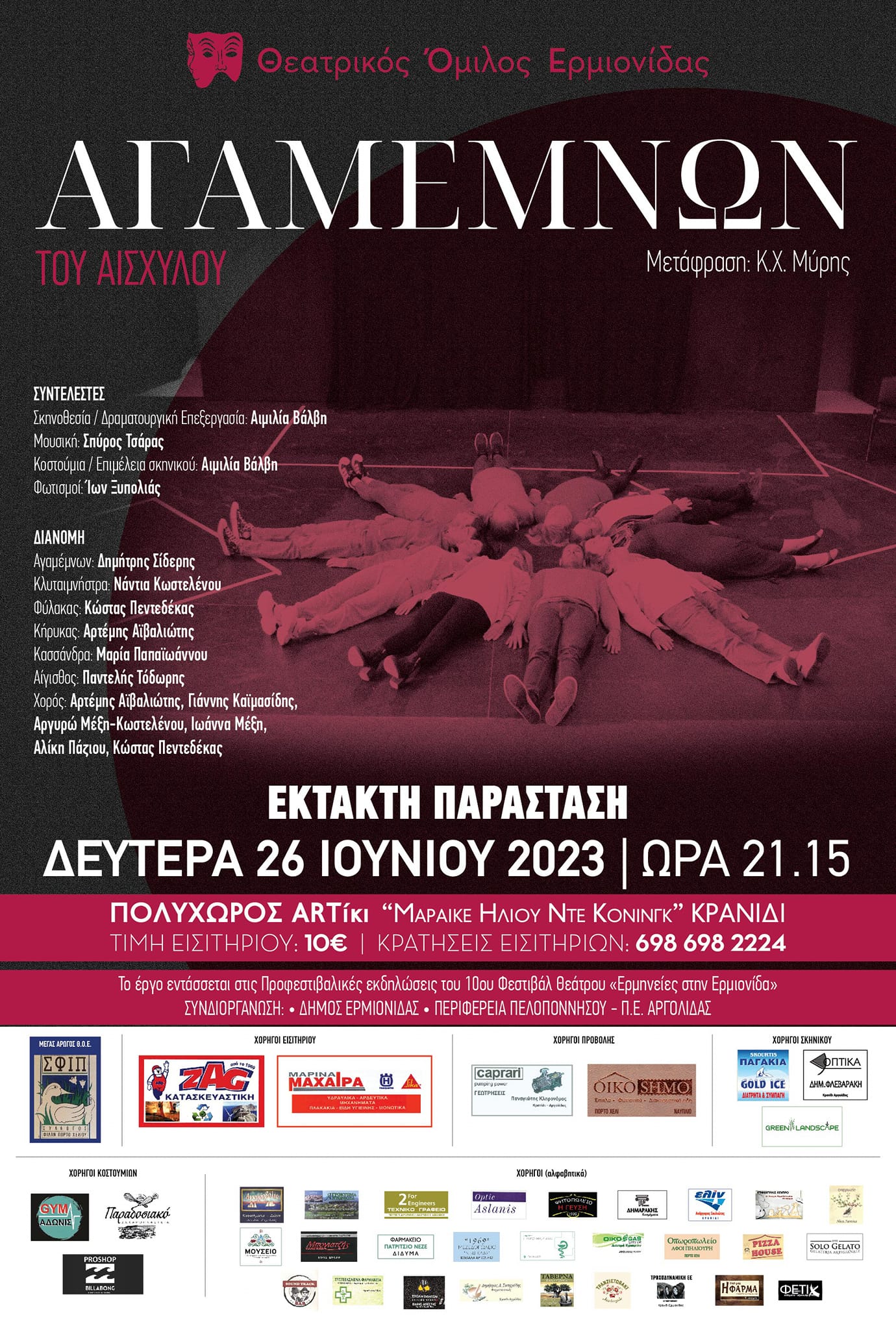 ΑΓΑΜΕΜΝΩΝ” του Αισχύλου η νέα παραγωγή του Θεατρικού Ομίλου Ερμιονίδας, στο πλαίσιο του επετειακού 10ου ΦΕΣΤΙΒΑΛ ΘEATΡOY “ΕΡΜΗΝΕΙΕΣ ΣΤΗΝ ΕΡΜΙΟΝΙΔΑ”