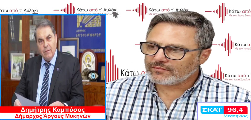 Στην εκπομπή “Κάτω από τ’ Αυλάκι” και στον Ίωνα Ξυπολιά μίλησε σήμερα ο Δήμαρχος Άργους-Μυκηνών και πρόεδρος της ΠΕΔ Πελοποννήσου, κ. Δημήτρης Καμπόσος σχολιάζοντας τόσο το αποτέλεσμα των εκλογών όσο και τη σύνθεση της νέας Κυβέρνησης.