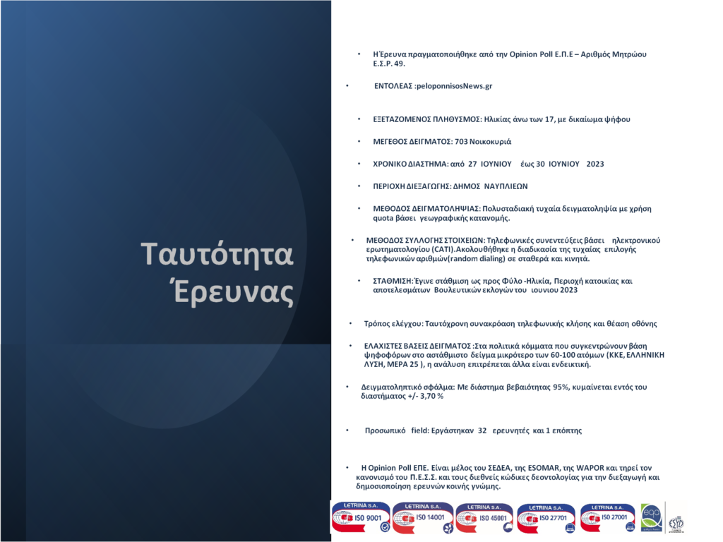 Η δειγματοληψία ήταν τυχαία και στρωματοποιημένη σε 17+ ηλικίας ψηφοφόρων του Δήμου .