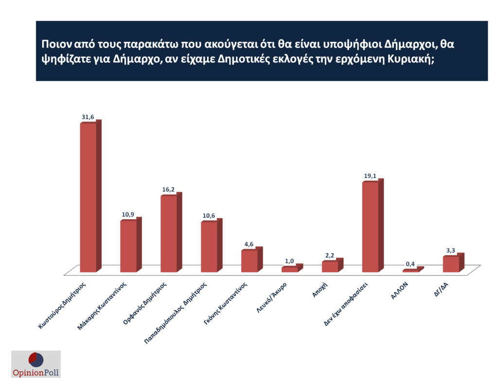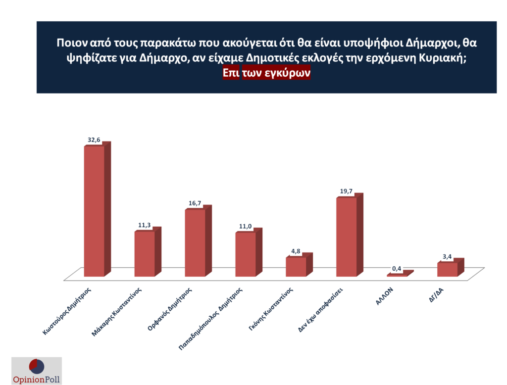 Όπως τόνισε και ο γενικός διευθυντής της Opinion Poll κ. Ζούπης κατά την παρουσίαση των αποτελεσμάτων της έρευνας , «αναλύοντας και τα ποιοτικά στοιχεία της έρευνας προκύπτει ένα ξεκάθαρο προβάδισμα του Δημήτρη Κωστούρου που δύσκολα μπορεί να ανατραπεί στις κάλπες.