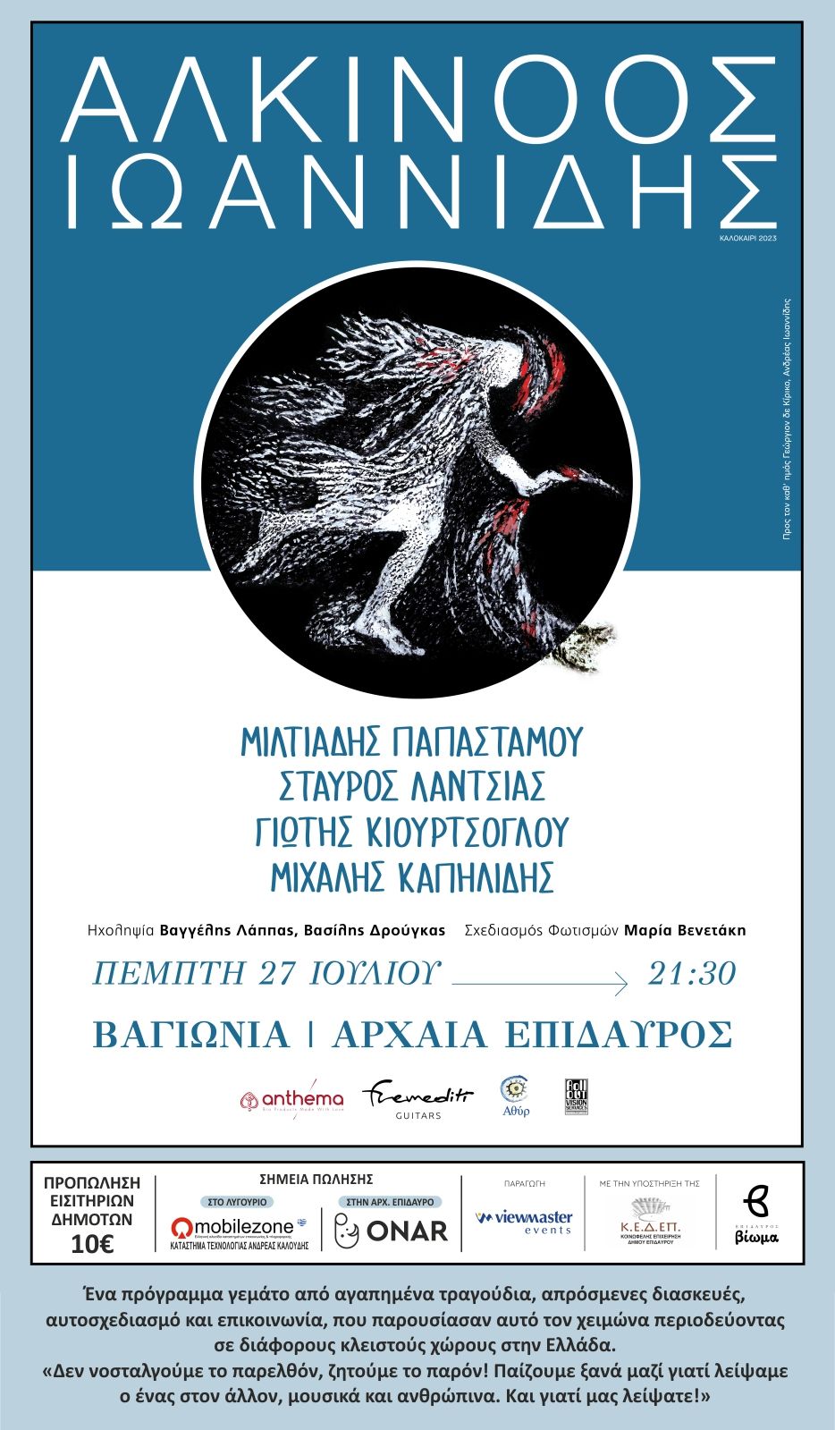 Προπώληση εισιτηρίων για τους Δημότες Επιδαύρου : 10 ευρώ