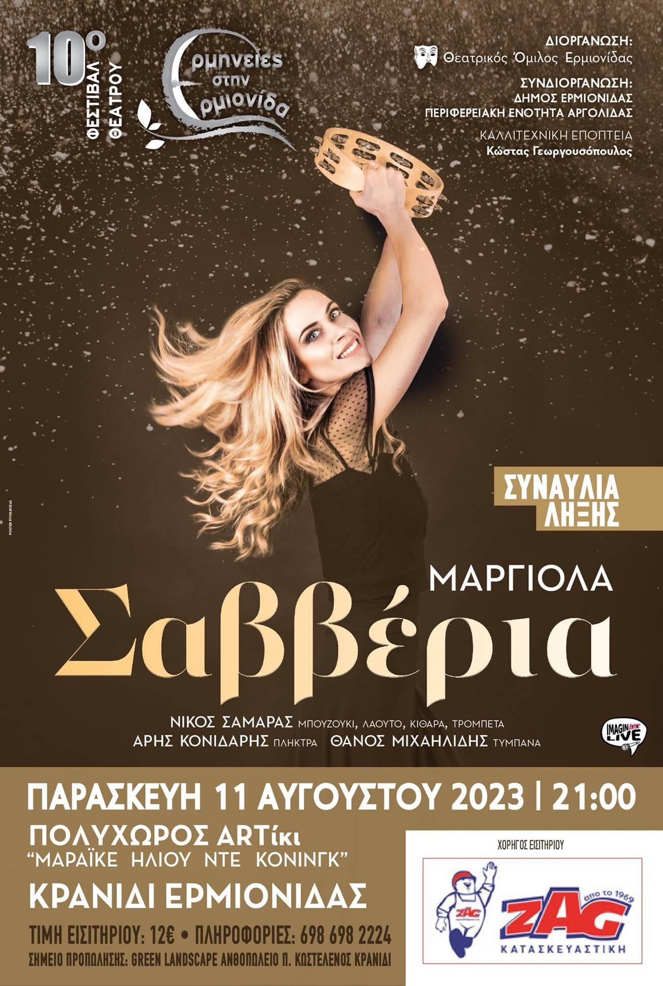 Με τη μουσική συναυλία της ταλαντούχου ερμηνεύτριας Σαββέριας Μαργιολά θα πέσει η αυλαία του 10ου Φεστιβάλ Θεάτρου «Ερμηνείες στην Ερμιονίδα», τoυ κορυφαίου πολιτιστικού θεσμού που φέτος συμπλήρωσε την πρώτη του δεκαετία, με διοργανωτή το Θεατρικό Όμιλο Ερμιονίδας και συνδιοργανωτές το Δήμο Ερμιονίδας και την Περιφέρεια Πελοποννήσου-Περιφερειακή Ενότητα Αργολίδας.
