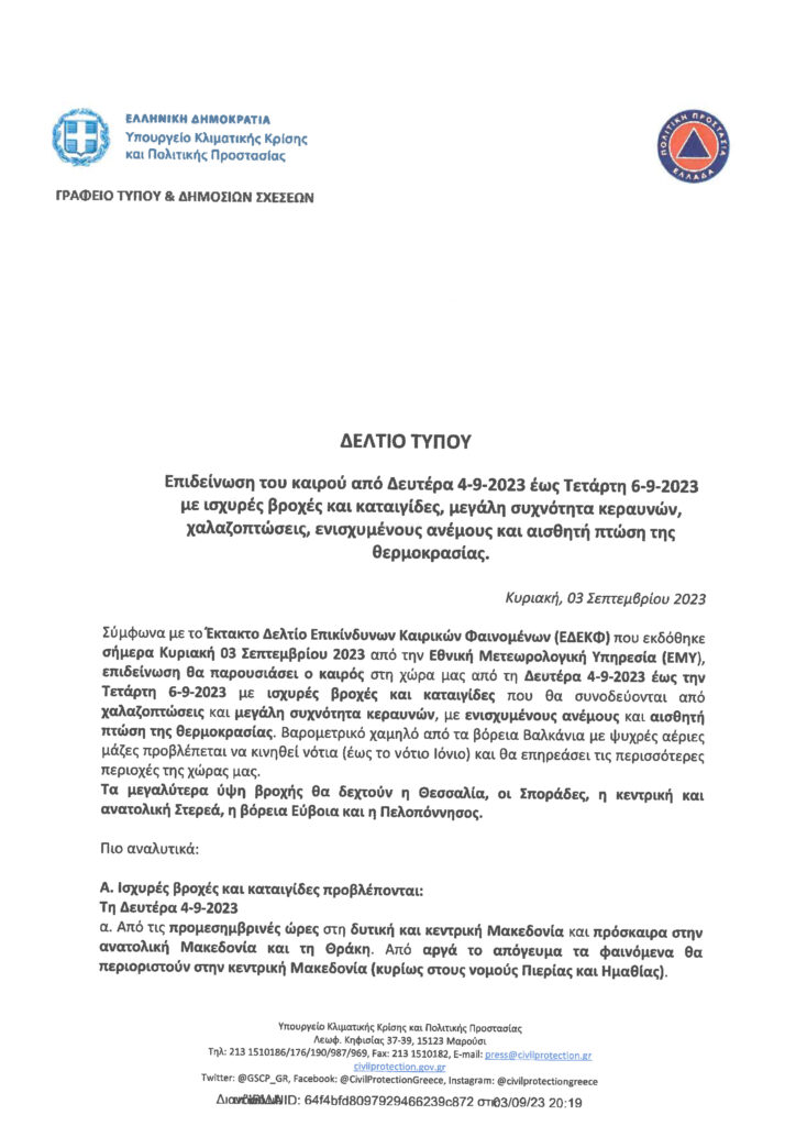 Κακοκαιρία: Οδηγίες από την Γενική Γραμματεία Πολιτικής Προστασίας 04/09/202304/09/2023 - by ΕΔΩ ΠΕΛΟΠΟΝΝΗΣΟΣ - Αφήστε ένα σχόλιο
