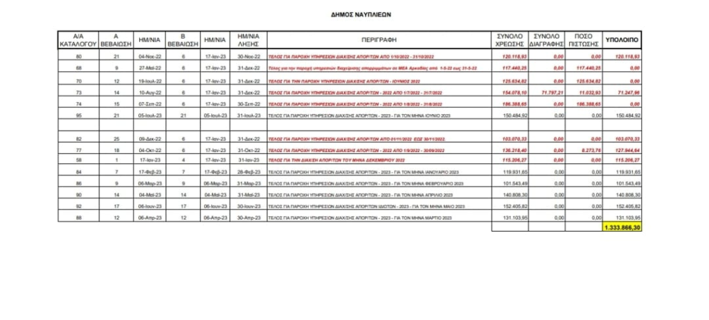 «Χρέη εκτός ορίων πλέον στο Δήμο Ναυπλιέων – Κατάσχεση 1.333.866 Ευρώ για τις οφειλές από τη διαχείριση των απορριμμάτων»