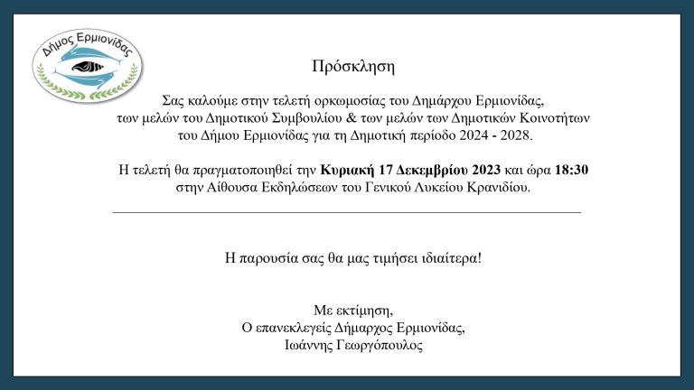 Την Κυριακή η Ορκωμοσία του Δημάρχου Ερμιονίδας, των μελών του Δημοτικού Συμβουλίου και των Κοινοτήτων 14/12/202314/12/2023 - by ΕΔΩ ΠΕΛΟΠΟΝΝΗΣΟΣ - Αφήστε ένα σχόλιο