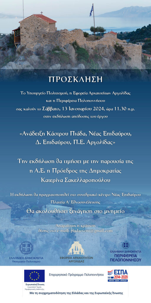 Αποδίδεται παρουσία της Προέδρου της Δημοκρατίας το έργο ανάδειξης του Κάστρου Πιάδας στη Νέα Επίδαυρο 03/01/202403/01/2024 - by ΕΔΩ ΠΕΛΟΠΟΝΝΗΣΟΣ - Αφήστε ένα σχόλιο