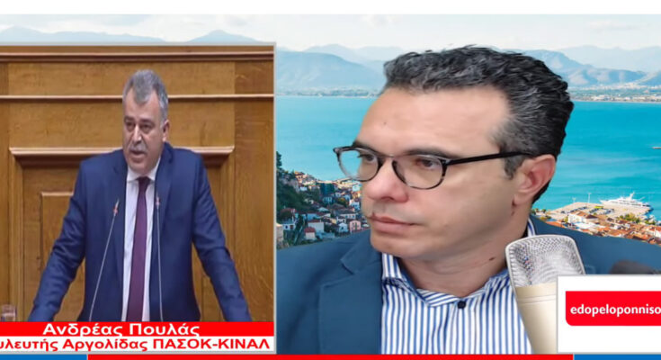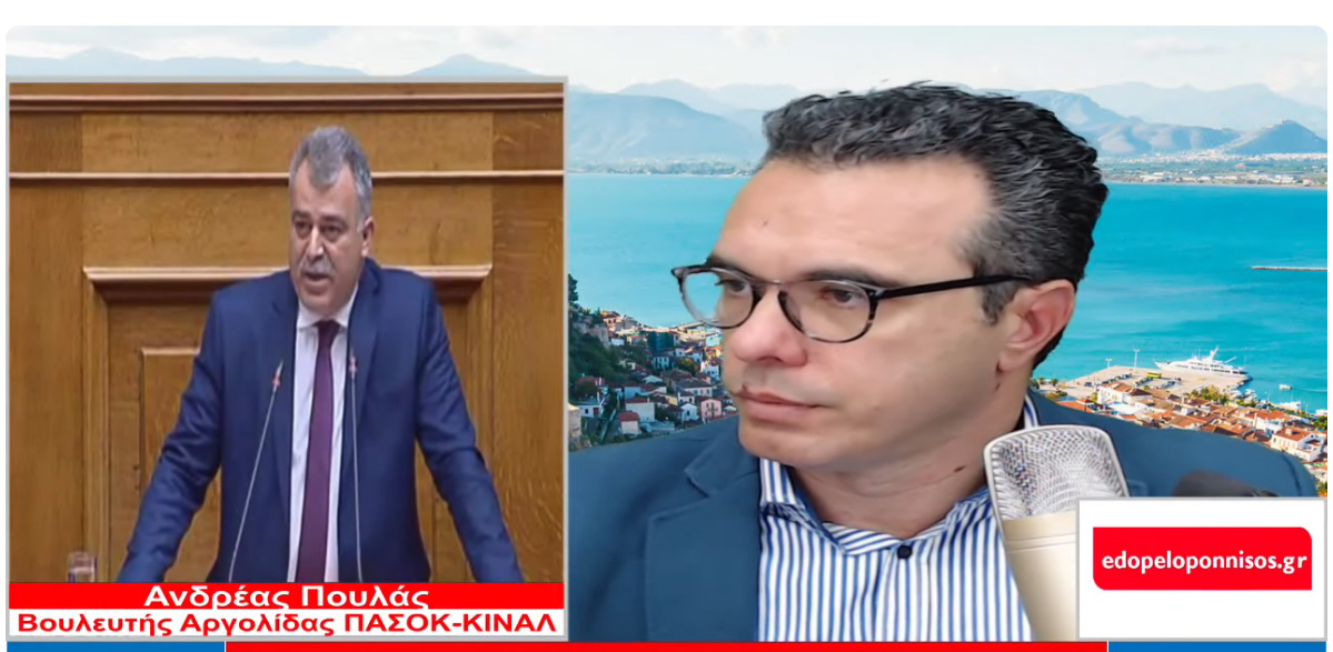 Στην εκπομπή “Εδώ Πελοπόννησος” και στον Βασίλη Ζώη μίλησε σήμερα ο βουλευτής Αργολίδας του ΠΑΣΟΚ-ΚΙΝΑΛ, κ. Ανδρέας Πουλάς καθώς πρόσφατα συζητήθηκε στη Βουλή η επίκαιρη ερώτησή του για το πρόβλημα των συσσωρευμένων χρεών του ΓΟΕΒ και των ΤΟΕΒ Αργολίδας που είχε ως αποτέλεσμα διακοπή της ηλεκτροδότησης στο κεντρικό αντλιοστάσιο του Αναβάλου.