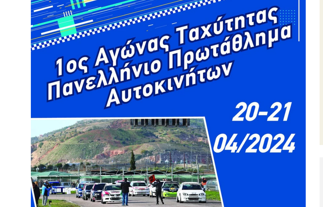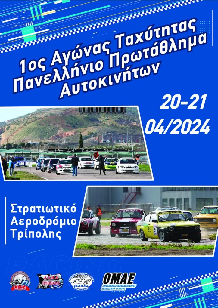 Το Στρατιωτικό Αεροδρόμιο Τρίπολης θα υποδεχτεί το Σαββατοκύριακο 20 και 21 Απριλίου, 45 οδηγούς, οι οποίοι θα λάβουν μέρος στον πρώτο αγώνα του Πανελληνίου Πρωταθλήματος Ταχύτητας στις κατηγορίες Ν & Α, Ε, Formula Saloon και Ιστορικών. Διοργανωτές είναι τα Σωματεία «Αγωνιστικός Σύλλογος Ιδιοκτητών Σπορ αυτοκινήτων» (ΑΣΙΣΑ) και «Ελληνική Λέσχη Αυτοκινήτου Δυτικής Αττικής» (ΕΛ.Λ.Α.Δ.Α.).