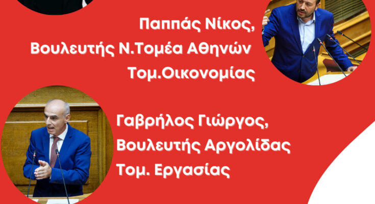 Κεντρικοί Ομιλητές: η Βούλα Κεχαγιά, Εκπρόσωπος Τύπου του Κόμματος, ο Νίκος Παππάς, βουλευτής Νοτίου Τομέα Αθηνών και Τομεάρχης Οικονομίας και ο Γιώργος Γαβρήλος, βουλευτής Αργολίδας και Τομεάρχης Εργασίας.