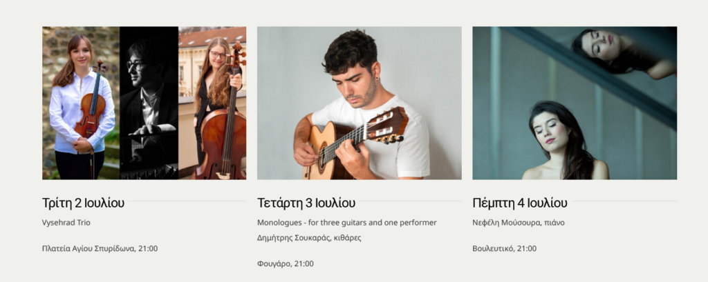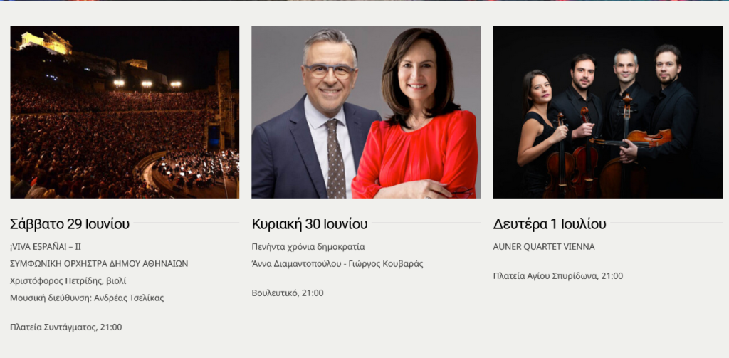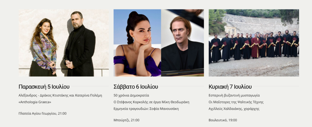 Η αυλαία του 33ου Φεστιβάλ Ναυπλίου, το οποίο περιλαμβάνει 9 συναυλίες και μια συζήτηση, θα ανοίξει το Σάββατο 29 Ιουνίου 2024, με τη Συναυλία της Συμφωνικής Ορχήστρας του Δήμου Αθηναίων, στην πλατεία Συντάγματος και θα “πέσει” την Κυριακή 7 Ιουλίου 2024, με Ρεσιτάλ τσέλου και πιάνου στην αίθουσα του Βουλευτικού.