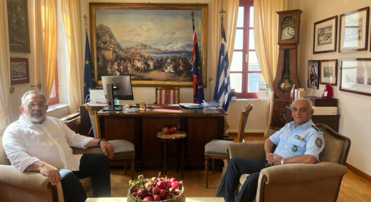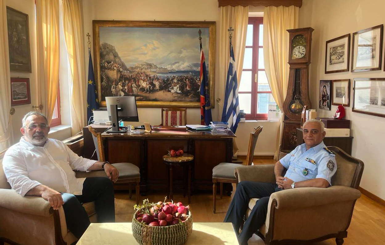 Ενημερωτική επίσκεψη πραγματοποίησε σήμερα ο Γενικός Περιφερειακός Αστυνομικός Διευθυντής Πελοποννήσου Υποστράτηγος κ. Ηλίας Αξιοτόπουλος στο Δήμαρχο Ναυπλιέων Δημήτριο Ορφανό.