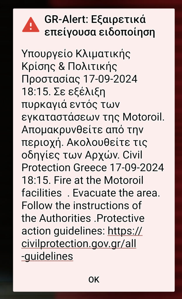 Πυκνοί καπνοί έχουν καλύψει την περιοχή και σύμφωνα με πληροφορίες αναμένεται να σταλεί μήνυμα από το 112 προειδοποιητικό για τους κατοίκους.