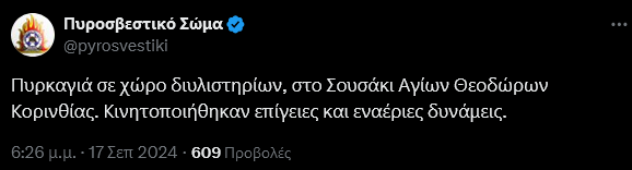 Σύμφωνα με τις πρώτες πληροφορίες η κινητοποίηση των Αρχών στο σημείο είναι μεγάλη, καθώς έχουν σπεύσει εννέα οχήματα και 30 πυροσβέστες.