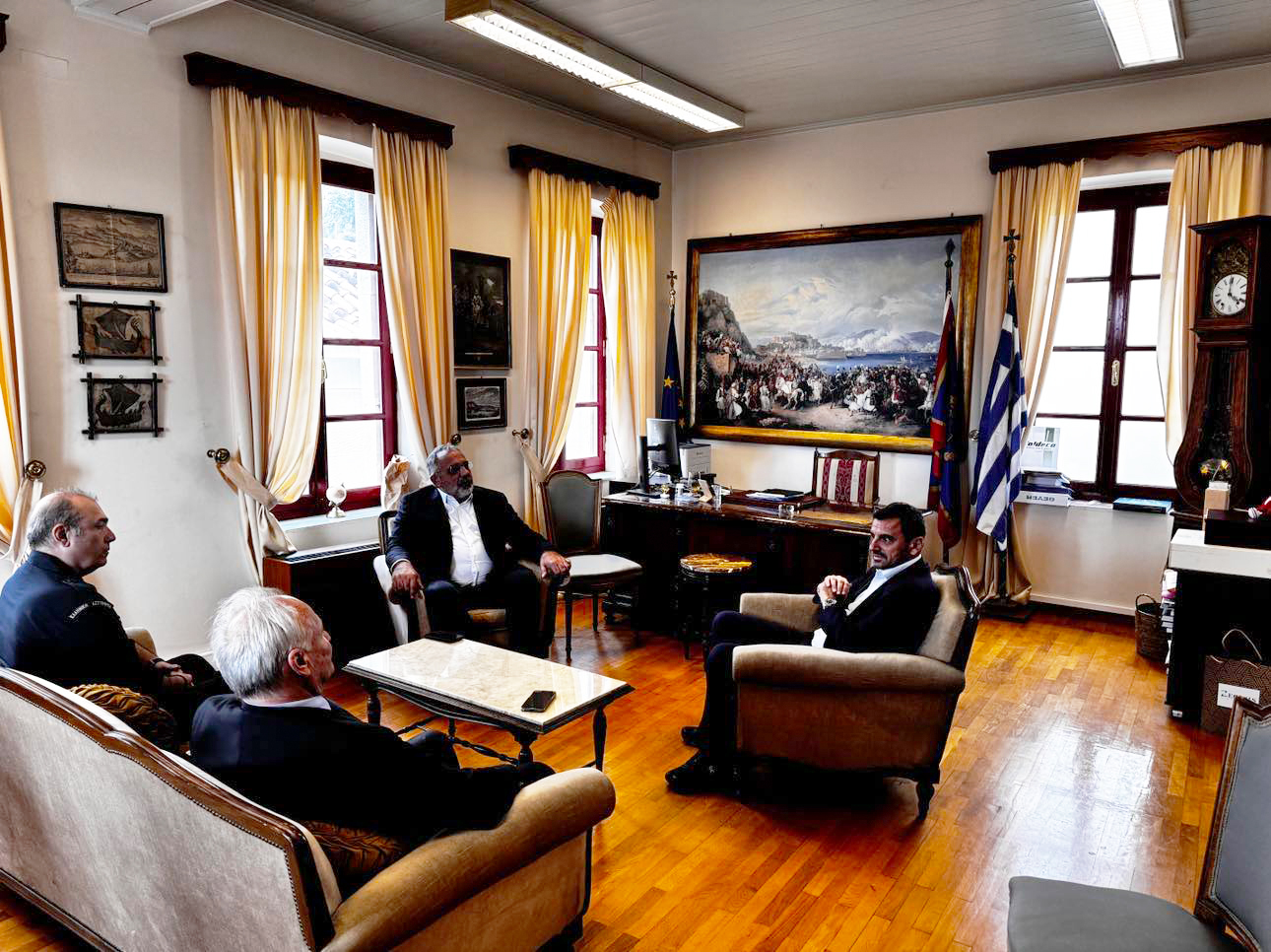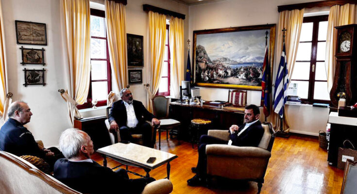 Τον Δήμαρχο Ναυπλιέων Δημήτρη Ορφανό επισκέφτηκε σήμερα στο Δημαρχείο Ναυπλίου, ο νέος υφυπουργός Προστασίας του Πολίτη, βουλευτής Ηλείας της Νέας Δημοκρατίας, Ανδρέας Νικολακόπουλος.