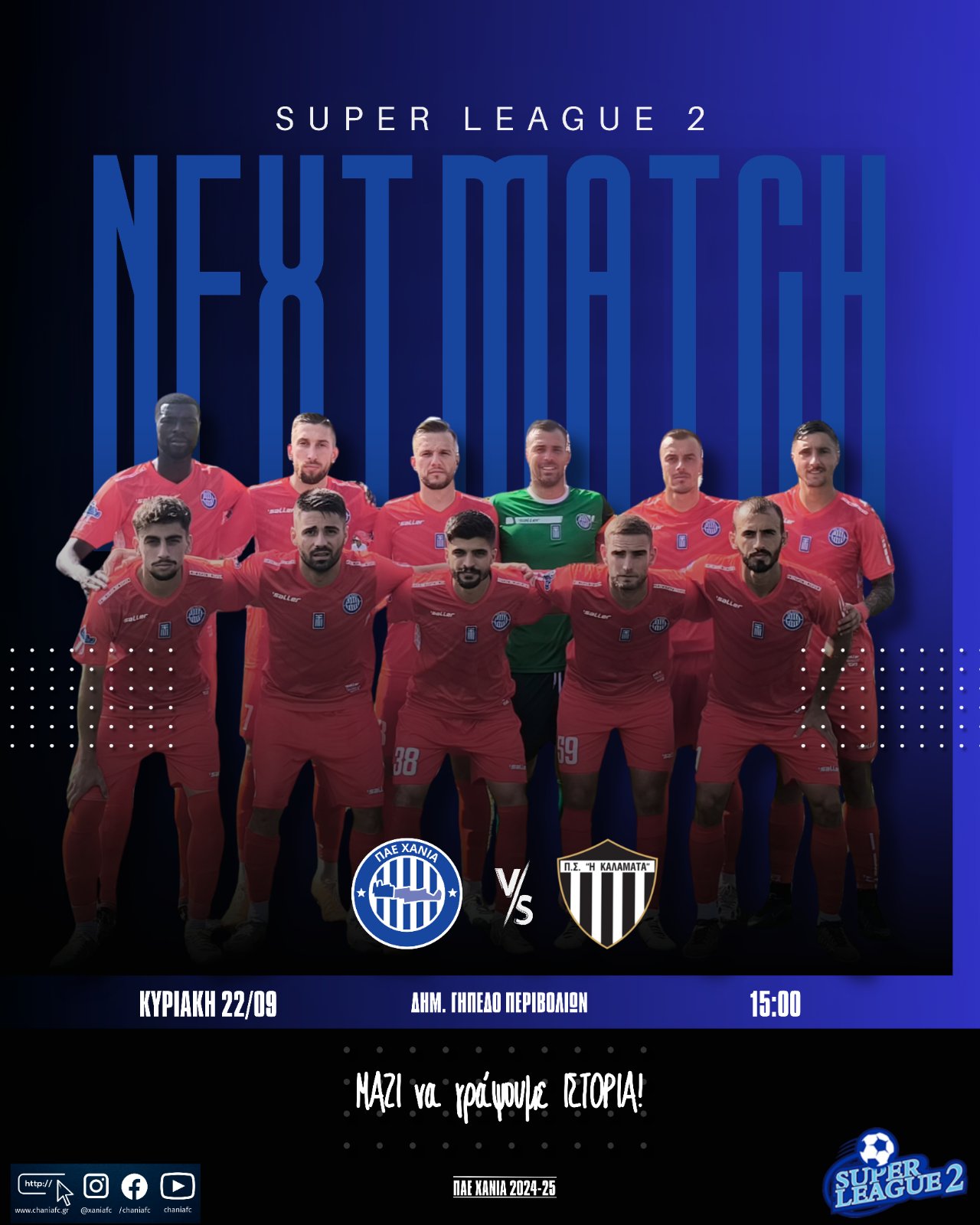 Από το ΑΓΩΝΙΣΤΙΚΟ: θα θέλαμε να σας ενημερώσουμε ότι ο αγώνας ΑΕΛ – ΚΑΒΑΛΑ (Α’ ΟΜΙΛΟΣ) της 1ης αγωνιστικής του πρωταθλήματος SUPER LEAGUE 2 2024-25, θα διεξαχθεί το ΣΑΒΒΑΤΟ 21/09/24 στο Α.Ε.L FC ARENA στις 14:45 αντί την ΚΥΡΙΑΚΗ 22/09/24 στις 12:00 όπως αρχικά είχε προγραμματιστεί και ο αγώνας ΧΑΝΙΑ – ΚΑΛΑΜΑΤΑ (Β’ ΟΜΙΛΟΣ), θα διεξαχθεί την ΚΥΡΙΑΚΗ 22/09/24 στο ΓΗΠΕΔΟ ΠΕΡΙΒΟΛΙΩΝ στις 12:00 αντί στις 15:00 όπως αρχικά είχε προγραμματιστεί.