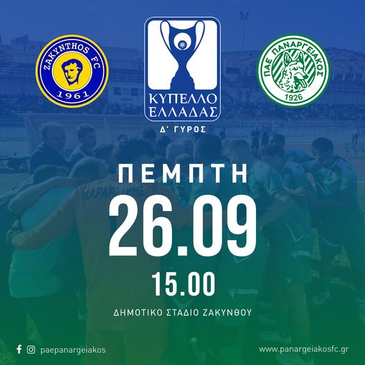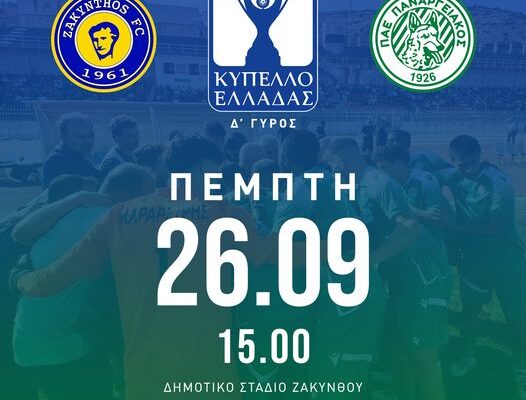 Ο Σκάι Αργολίδας 102,0 θα αναμεταδόσει ζωντανά (14:45) από το Δημοτικό Στάδιο Ζακύνθου τον αγώνα Ζάκυνθος – Παναργειακός για την 4η φάση του Κυπέλλου Ελλάδος.