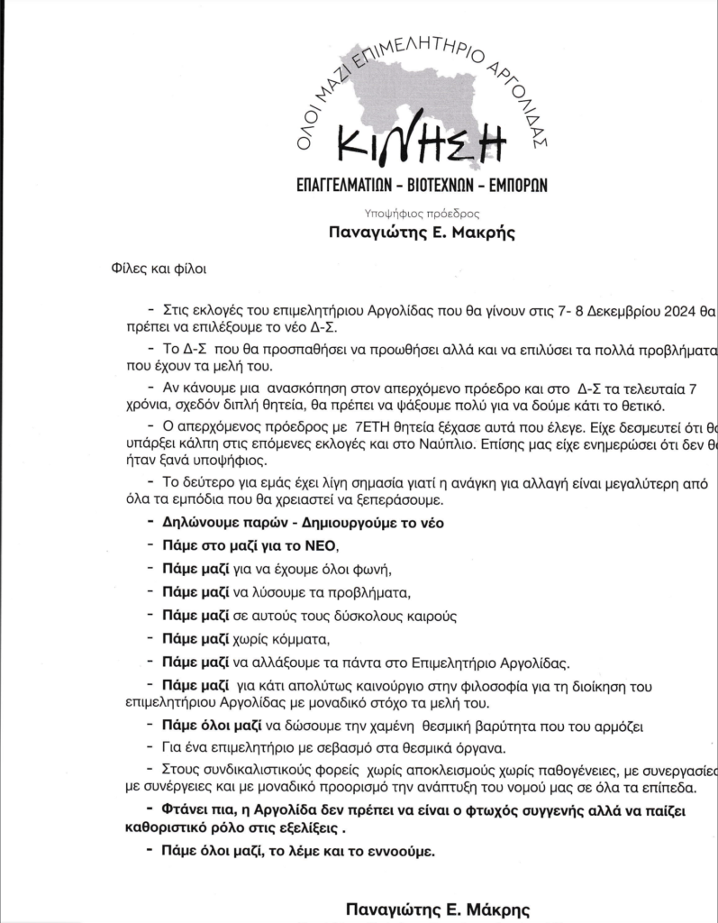 Ο Παναγιώτης Μακρής υποψήφιος πρόεδρος του Επιμελητηρίου Αργολίδας 23/10/202423/10/2024 - by ΕΔΩ ΠΕΛΟΠΟΝΝΗΣΟΣ - Αφήστε ένα σχόλιο Ενημέρωση από την “Κίνηση Επαγγελματιών – Βιοτεχνών – Εμπόρων “ Υποψήφιος Πρόεδρος Επιμελητηρίου Αργολίδας