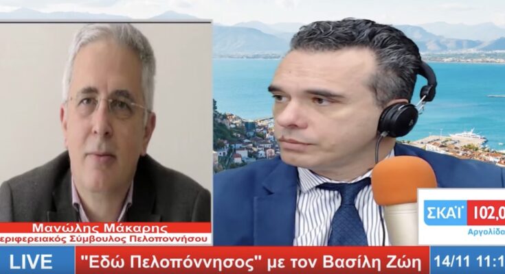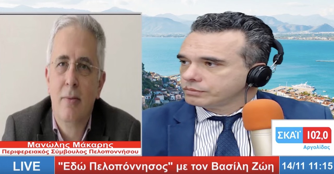 Ο περιφερειακός σύμβουλος Πελοποννήσου και σύνεδρος στο πρόσφατο επεισοδιακό Συνέδριο του ΣΥΡΙΖΑ, κ. Μανώλης Μάκαρης μίλησε σήμερα στην εκπομπή “Εδώ Πελοπόννησος”και στον Βασίλη Ζώη.