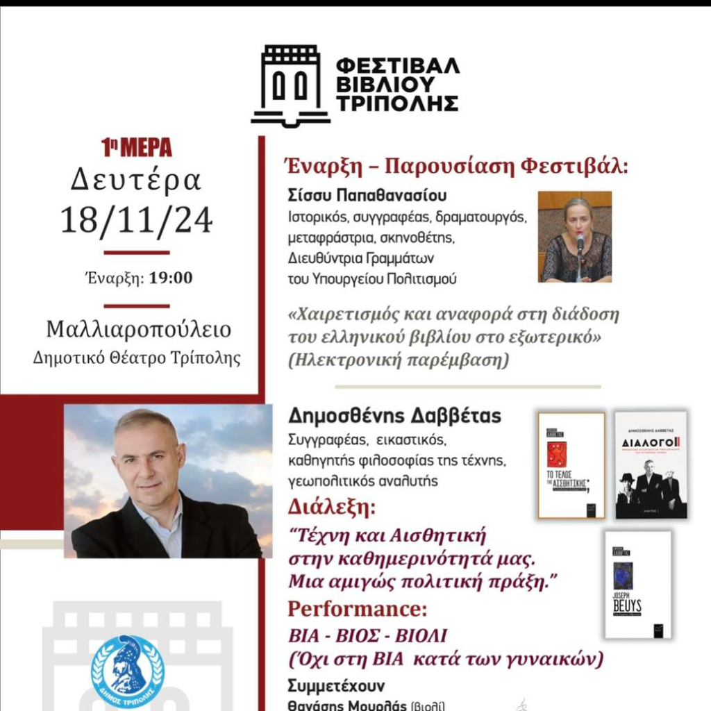 Το 1ο Φεστιβάλ Βιβλίου Τρίπολης από 18 ως 21 Νοεμβρίου
