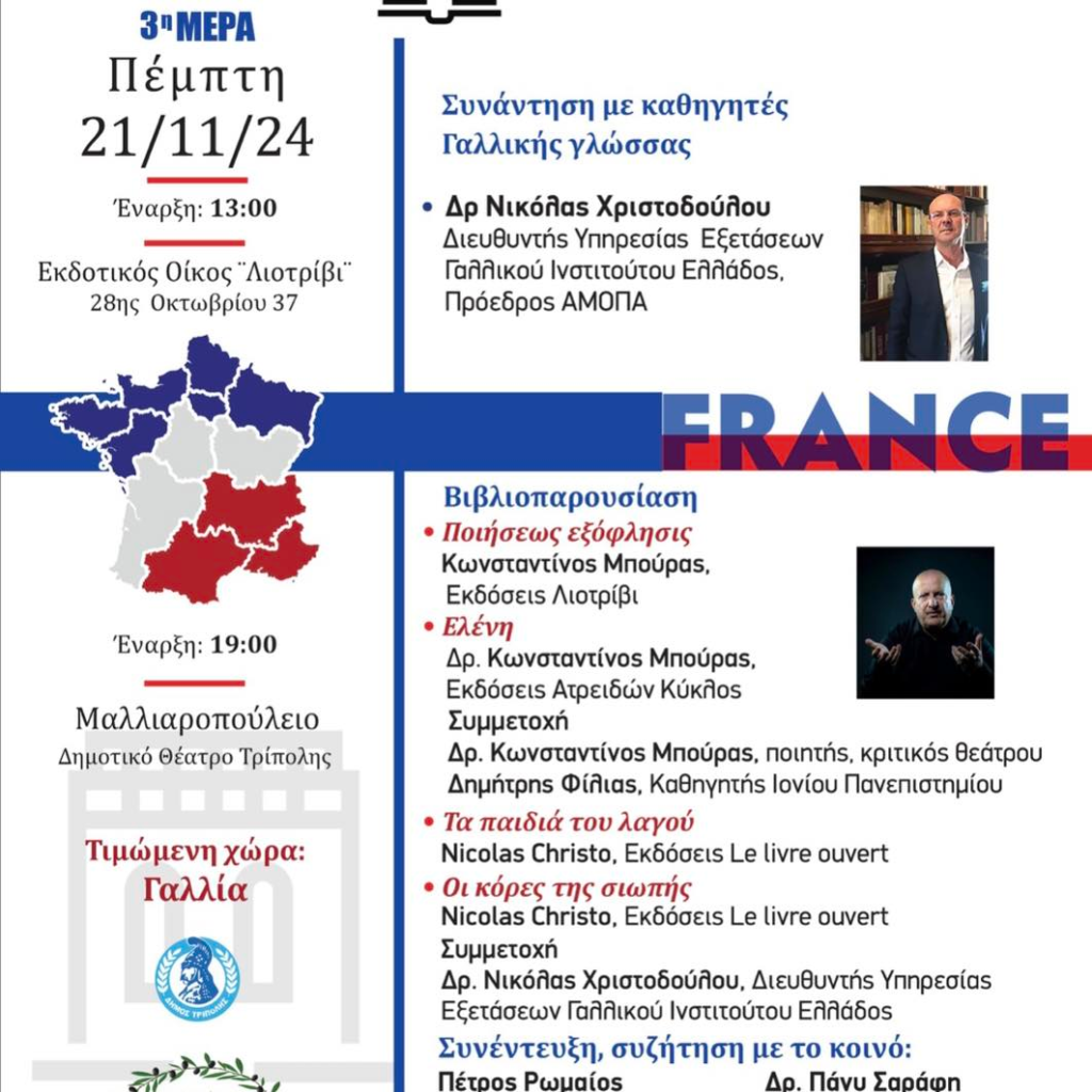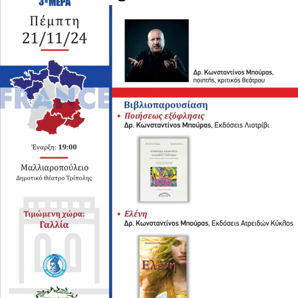 Το 1ο Φεστιβάλ Βιβλίου Τρίπολης θα πραγματοποιηθεί στην πόλη μας, από 18 ως 21 Νοεμβρίου 2024.