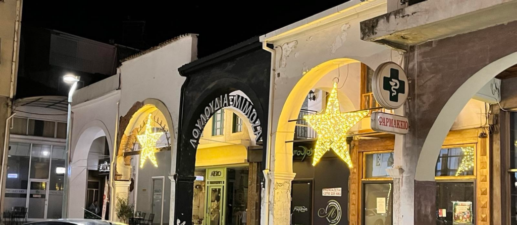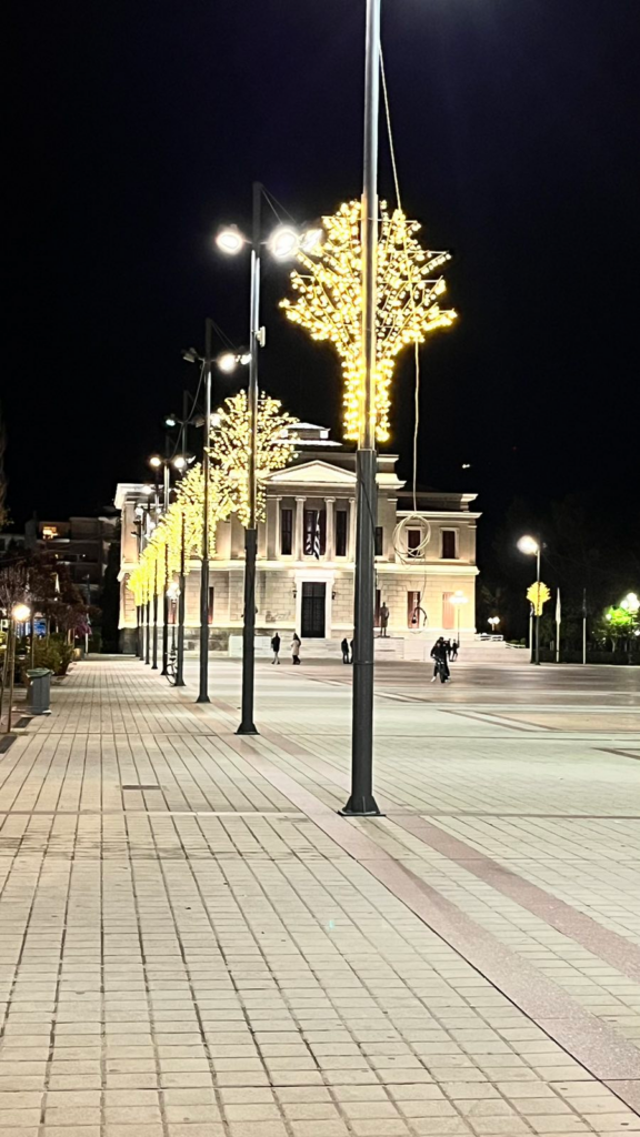Τα λαμπερά φώτα, η μεγάλη φωτεινή μπάλα, τα στολισμένα δέντρα και οι μοναδικές γιορτινές συνθέσεις που κοσμούν τις κεντρικές πλατείες και τους δρόμους της πόλης δημιουργούν ήδη μια μαγική ατμόσφαιρα, δίνοντας το έναυσμα για τη μεγάλη γιορτή των Χριστουγέννων.