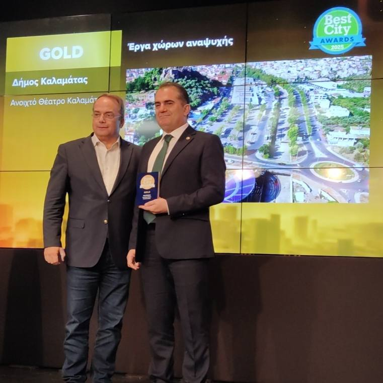 Μεγάλη διάκριση για το Δήμο Καλαμάτας στα “Best City Awards 2025” με την ανακήρυξή του ως Smart Town of the year.