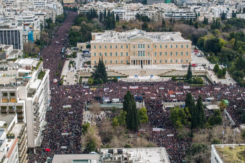 Η προσέλευση του κόσμου στο κάλεσμα για διαμαρτυρία ήταν πρωτοφανής, καθώς εκατοντάδες χιλιάδες Έλληνες ενώνουν τις φωνές τους με τις οικογένειες των θυμάτων και ζητούν δικαίωση. Οι πρώτες εκτιμήσεις αναφέρουν πως η σημερινή μεγαλειώδη συγκέντρωση της Αθήνας δείχνει να ξεπερνά σε όγκο ακόμη και τις συγκεντρώσεις των «Αγανακτισμένων» την περίοδο των μνημονίων, αλλά και άλλες μεγάλες διαδηλώσεις της Μεταπολίτευσης.