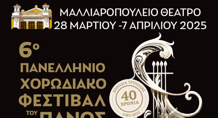 Η Τρίπολη γεμίζει μελωδίες! Από τις 28 Μαρτίου έως τις 7 Απριλίου 2025, το Μαλλιαροπούλειο Θέατρο φιλοξενεί το 6ο Πανελλήνιο Χορωδιακό Φεστιβάλ του Πανός, με τη συμμετοχή 60 και πλέον χορωδιών από Ελλάδα και Κύπρο.