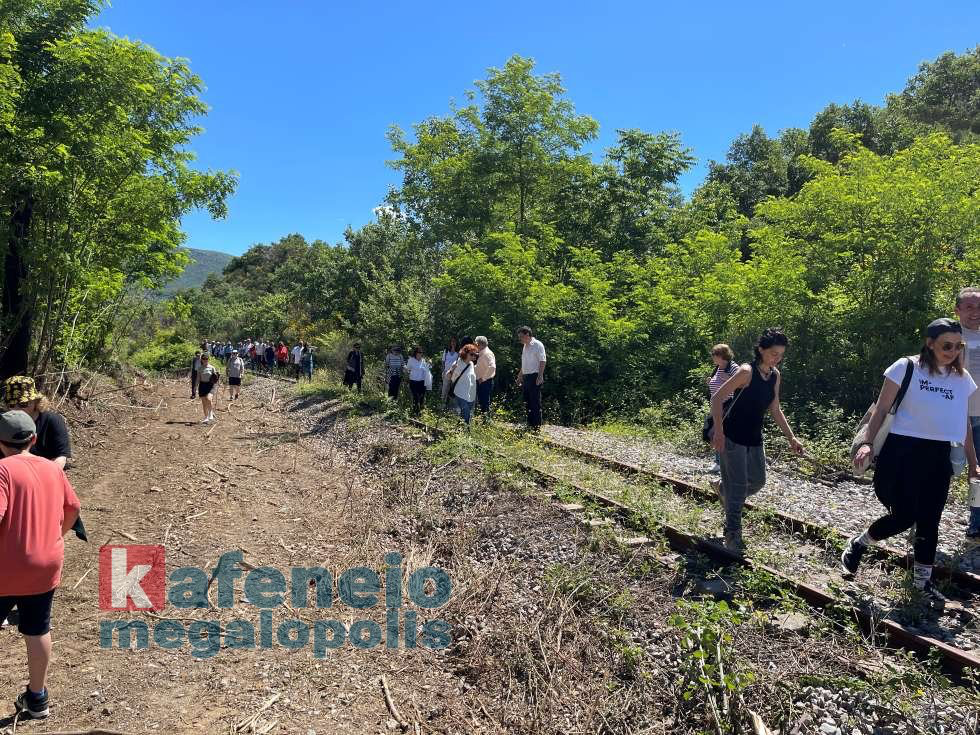 Mε πολύ μεγάλη συμμετοχή (πάνω από 200 ατόμων) ολοκληρώθηκε την Κυριακή 1 Ιουνίου 2025 στο Ρούτσι Μεγαλόπολης η εκδήλωση για τον σιδηρόδρομο. Τους προηγούμενους δυο μήνες προηγήθηκε ο μεγάλος καθαρισμός της γραμμής σε μήκος μερικών χιλιομέτρων από την είσοδο του φαραγγιού Μαρμαριάς – Ανεμοδουρίου έως το Ρούτσι. Η γραμμή ιδιαίτερα από την περιοχή Ανεμοδουρίου και νοτιότερα είχε μεταβληθεί σε αδιαπέραστο δάσος και σε αυτό το τμήμα είχαν δράσει με αποφασιστικότητα γύρω στους 30 εθελοντές για τη διάνοιξή του. Έτσι την Κυριακή κατέστη δυνατή η διέλευση πολλών δεκάδων πεζοπόρων οι οποίοι προέρχονταν κυρίως από την Αρκαδία αλλά κι από άλλα μέρη (Πάτρα, Ναύπλιο, Καλαμάτα, Αθήνα κλπ.) Περπατώντας στη γραμμή πέρασαν μέσα από το εντυπωσιακό φαράγγι θαυμάζοντας τις αριστοτεχνικά κατασκευασμένες γέφυρες, τα κτήρια και τη μεγάλη γαλαρία και ανάμεσα στην ανθισμένη μαγευτική οργιάζουσα ανοιξιάτική φύση, αγναντεύοντας μετά από ψηλά την ευρύτερη περιοχή της Μεγαλόπολης, έφτασαν στο Ρούτσι.