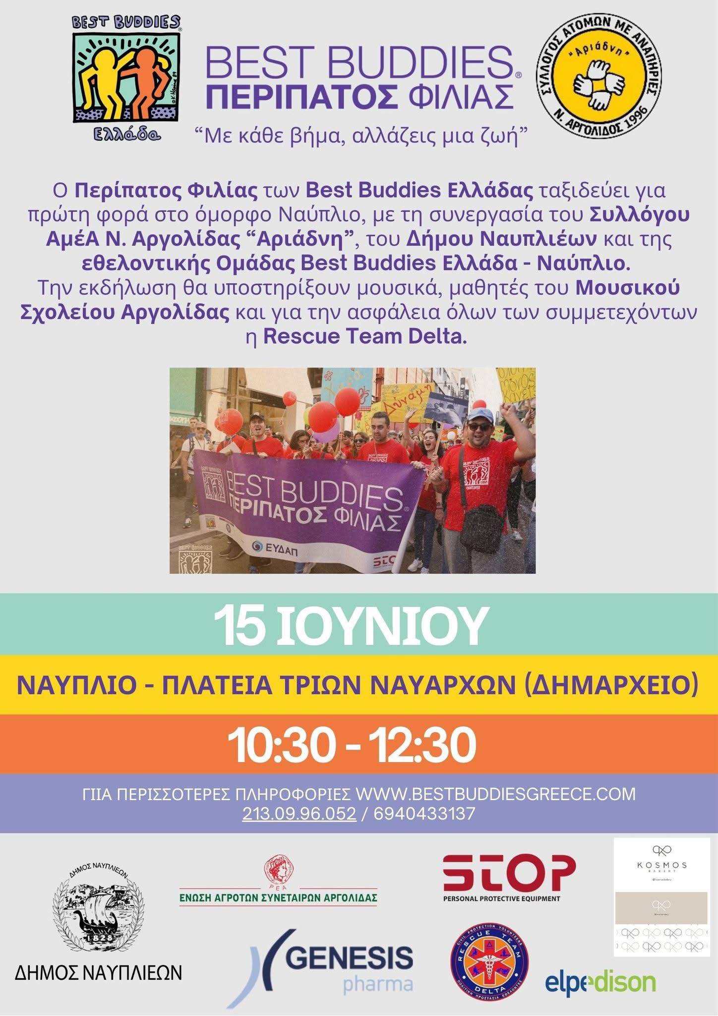 Ο Best Buddies Friendship Walk είναι η μεγαλύτερη παγκόσμια εκδήλωση για τη Φιλία και τη Συμπερίληψη – και φέτος κάνει στάση στο Ναύπλιο!
