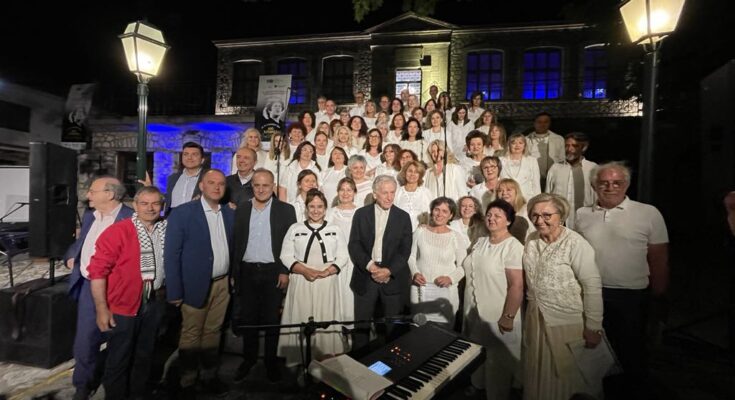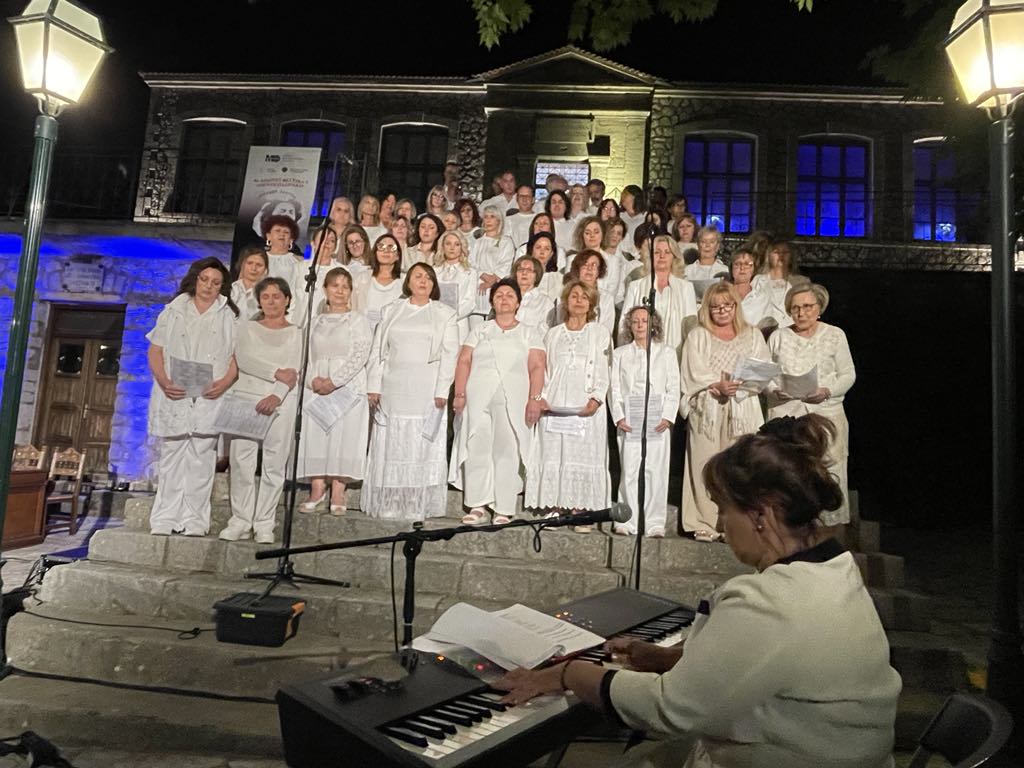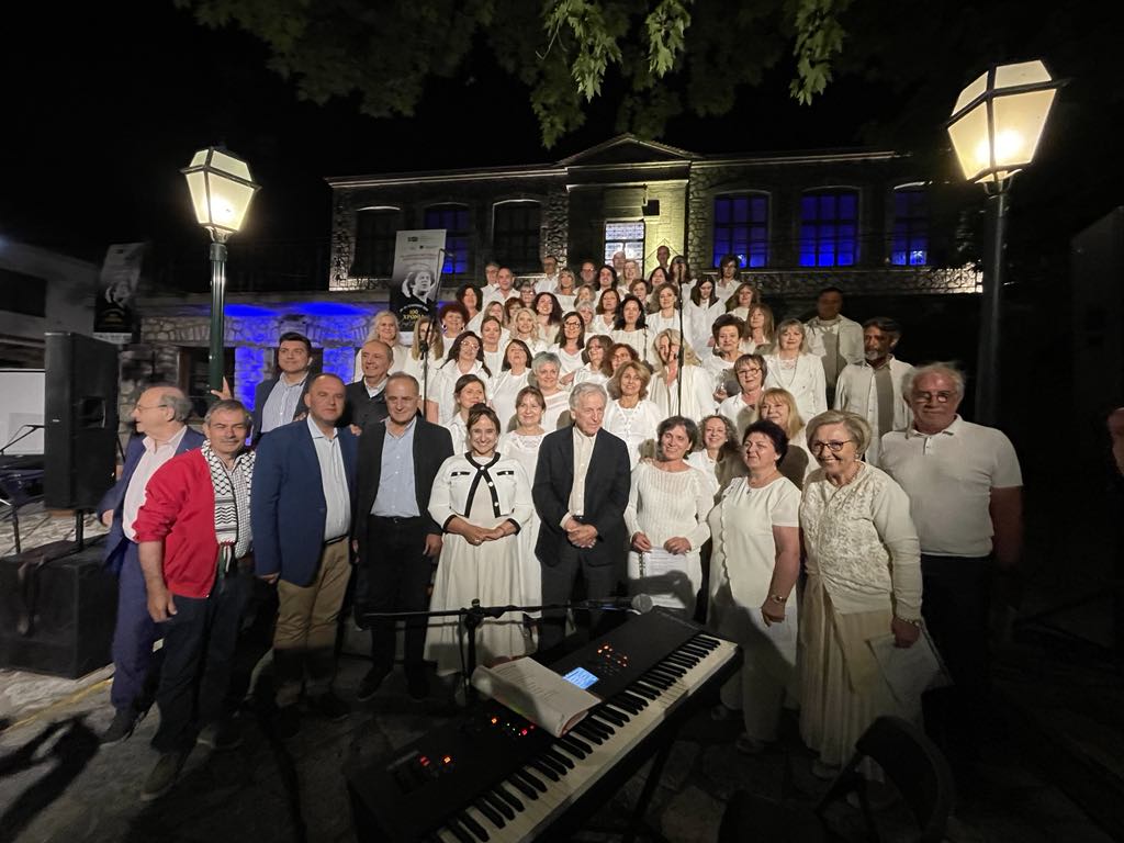 Ακολούθησε το μεγάλο λυρικό μουσικό πρόγραμμα με τη Μαέστρο Ελένη Αναγνώστου και τη 80μελή Χορωδία Βέροιας, που απέδωσαν μελωδίες βασισμένες σε ποίηση του Τάσου Λειβαδίτη, αναδεικνύοντας το βάθος και την καθολικότητα του έργου του Θεοδωράκη.