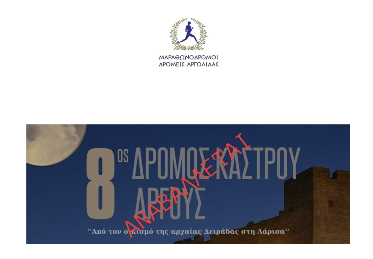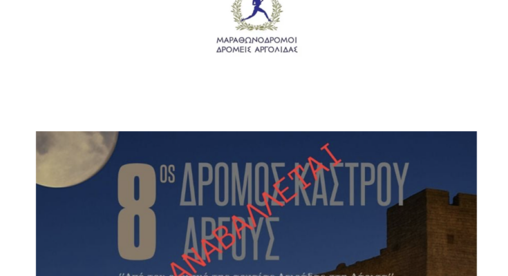 Ο Σύλλογος Μαραθωνοδρόμων και Δρομέων Αργολίδας ενημερώνει τα μέλη του, τους φίλους δρομείς και το κοινό ότι ο 8ος ΔΡΟΜΟΣ ΚΑΣΤΡΟΥ ΑΡΓΟΥΣ