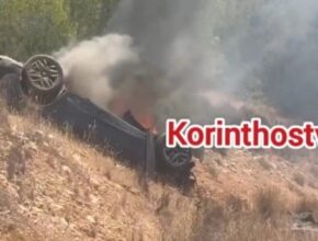 Κορινθία: Ι.Χ. βγήκε από το δρόμο και τυλίχθηκε στις φλόγες