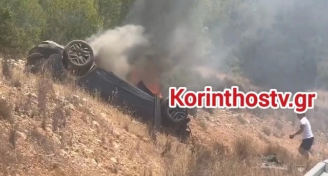 Κορινθία: Ι.Χ. βγήκε από το δρόμο και τυλίχθηκε στις φλόγες
