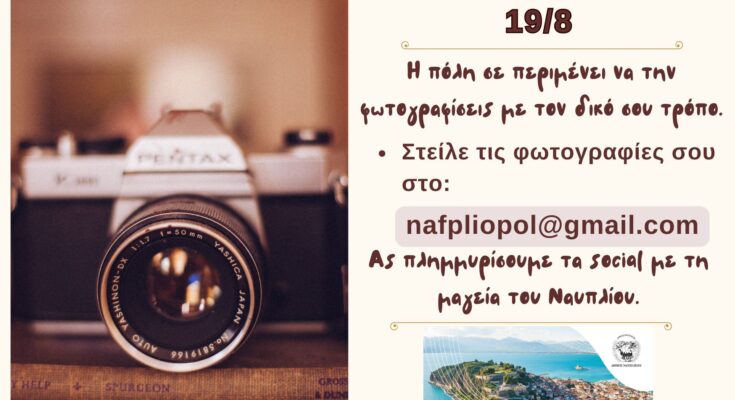 Ο Δήμος Ναυπλιέων γιορτάζει την Παγκόσμια Ημέρα Φωτογραφίας και σας καλεί να αποτυπώσετε το φως, την ατμόσφαιρα και τις στιγμές του Ναυπλίου μέσα από τον δικό σας φακό.