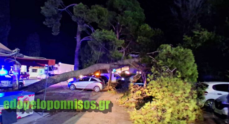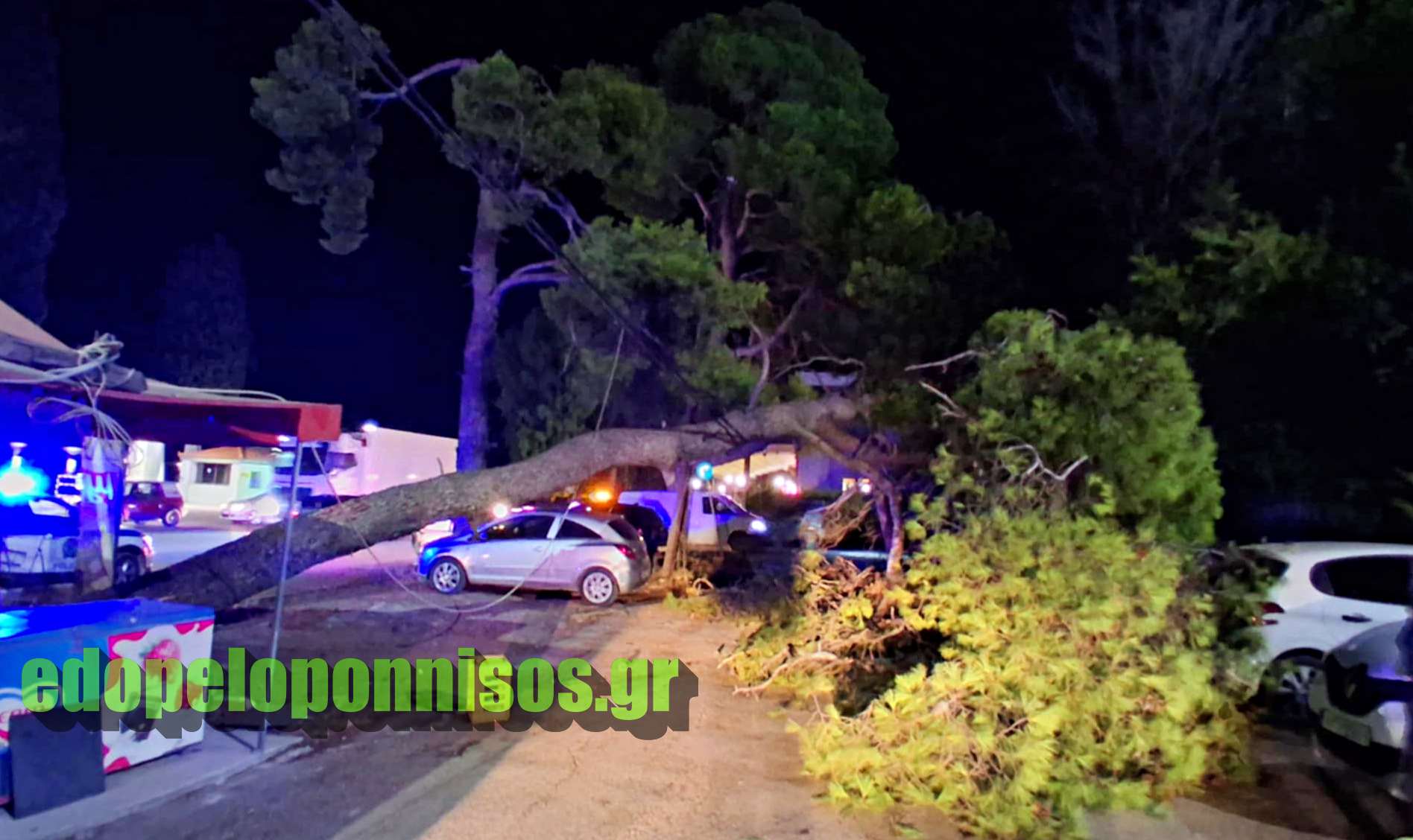 Ένα μεγάλο πεύκο έπεσε χθες Τετάρτη 27 Αυγούστου βράδυ στο Ναύπλιο και περίπου στις 23:30 κοντά στην Αστυνομική Διεύθυνση Αργολίδας.