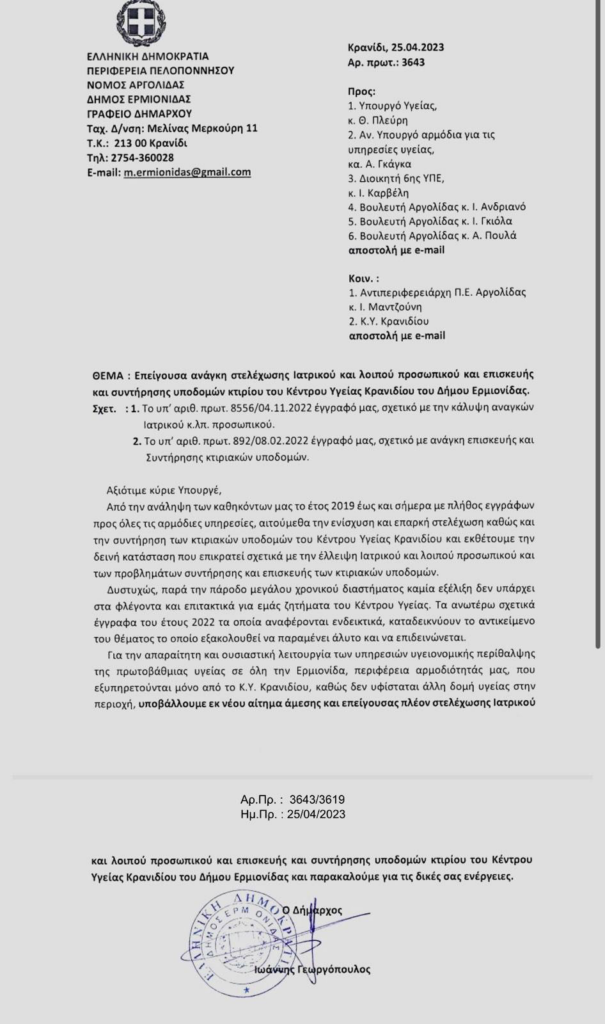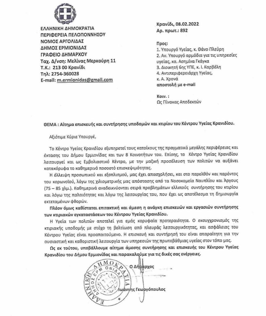 Ο Δήμαρχος Ερμιονίδας, κ. Γιάννης Γεωργόπουλος αναφέρει: