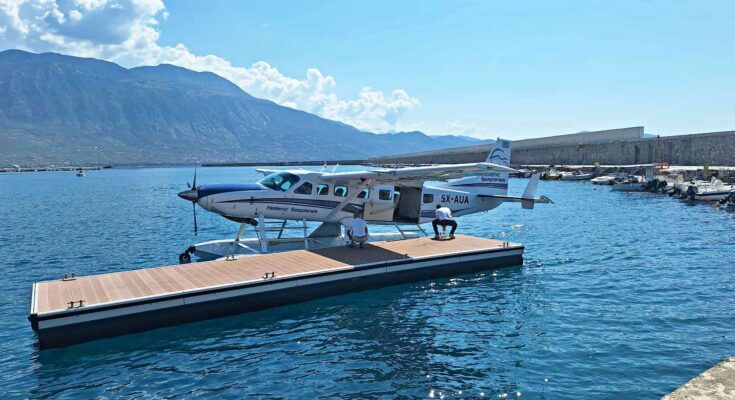 Στο λιμάνι της Καλαμάτας πραγματοποιήθηκε σήμερα η πρώτη επιχειρησιακή – δοκιμαστική πτήση υδροπλάνου της Hellenic Seaplanes.