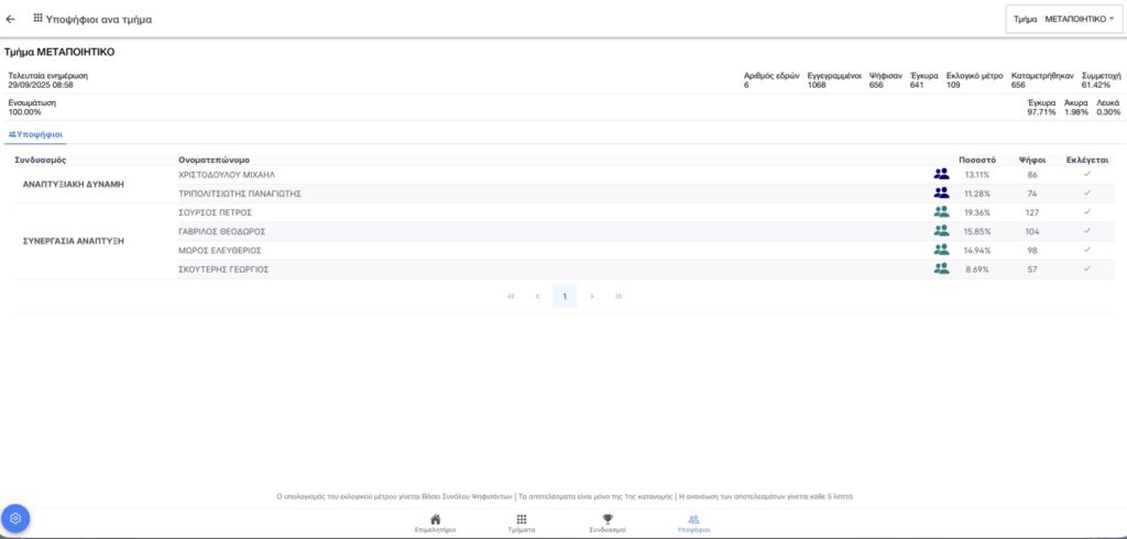 Τα αποτελέσματα μετά την πραγματοποίηση των επαναληπτικών εκλογών για το μεταποιητικό τμήμα του Επιμελητηρίου Αργολίδας το Σαββατοκύριακο 27-28 Σεπτεμβρίου.