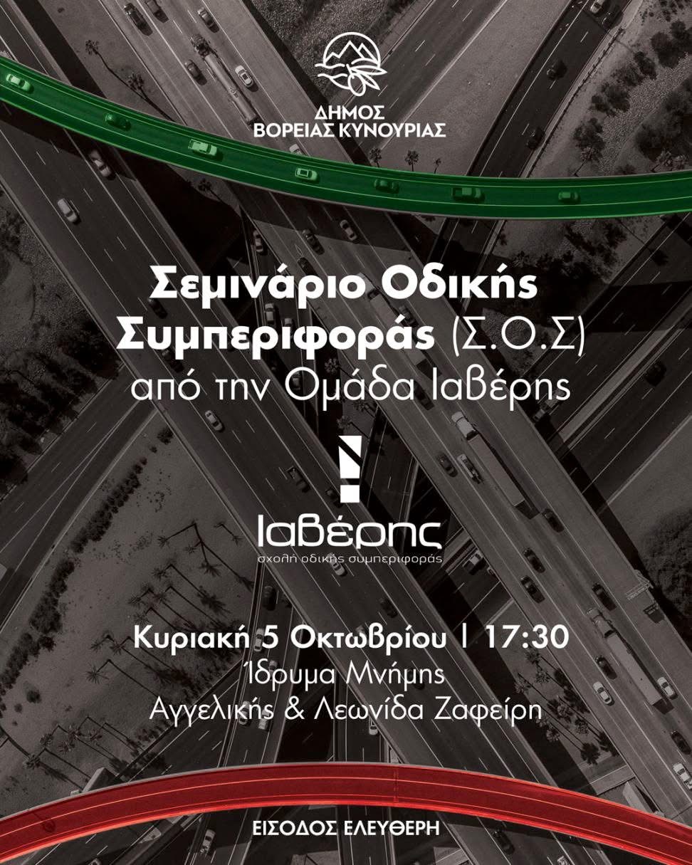 Ο Δήμος Βόρειας Κυνουρίας σε συνεργασία με τη Σχολή Ιαβέρη διοργανώνει Σεμινάριο Οδικής Συμπεριφοράς (Σ.Ο.Σ.), με στόχο την ευαισθητοποίηση και εκπαίδευση των πολιτών σε θέματα οδικής ασφάλειας.