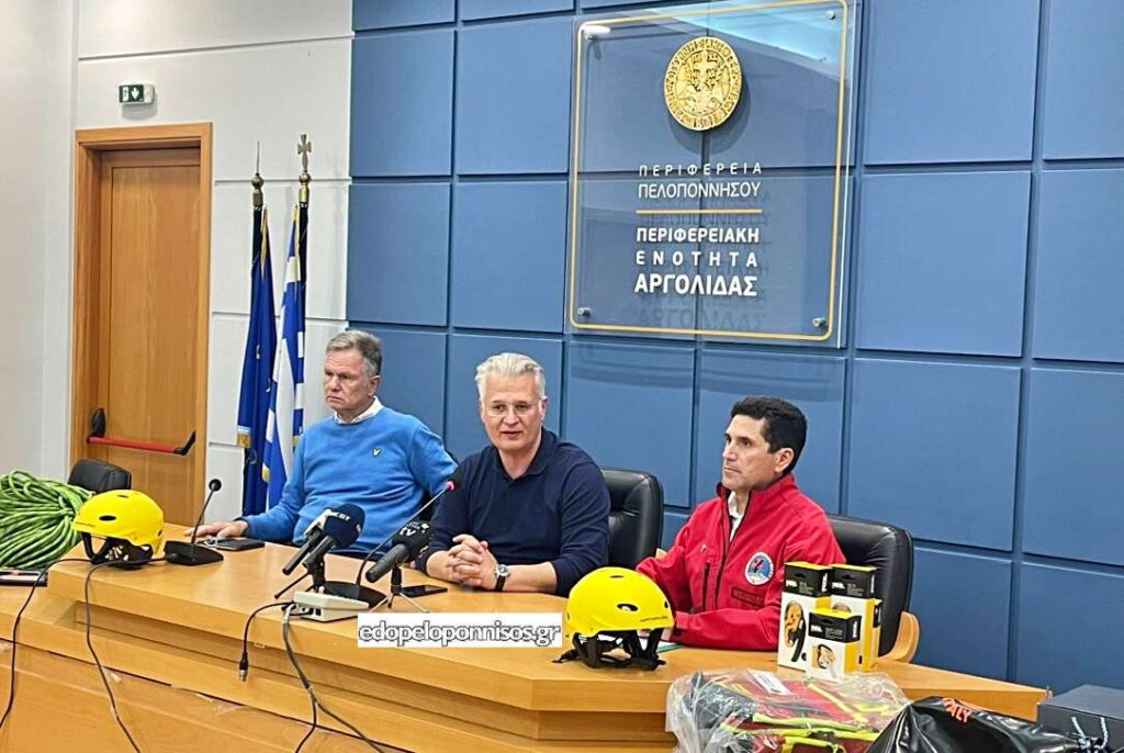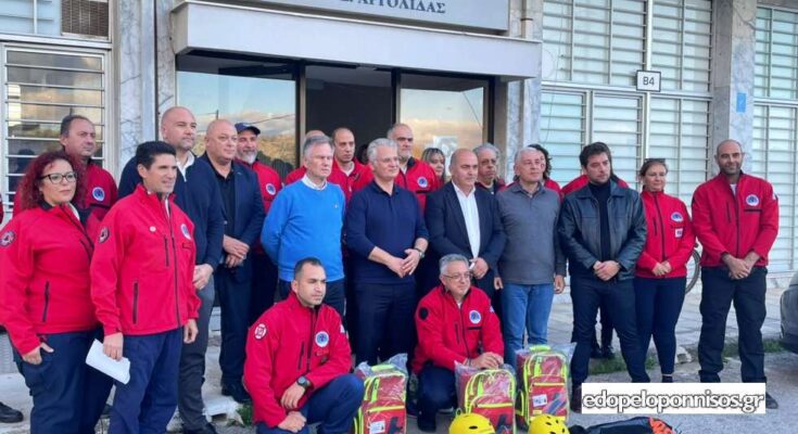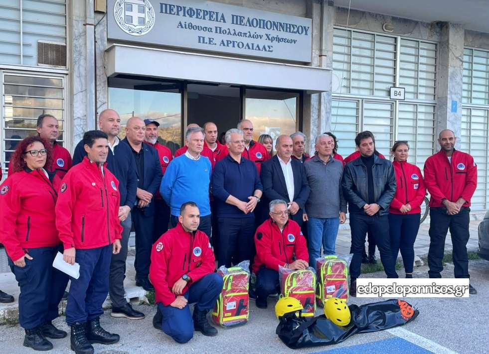 Σύγχρονο επιχειρησιακό εξοπλισμό ορεινής και σε υγρό στοιχείο διάσωσης — ορμητικά νερά και θάλασσα — παρέδωσε ο Περιφερειάρχης Πελοποννήσου Δημήτρης Πτωχός στην Ελληνική Ομάδα Διάσωσης, Παράρτημα Αργολίδας, σε ειδική τελετή που πραγματοποιήθηκε στην έδρα της Περιφερειακής Ενότητας το απόγευμα της Πέμπτης 6 Νοεμβρίου.