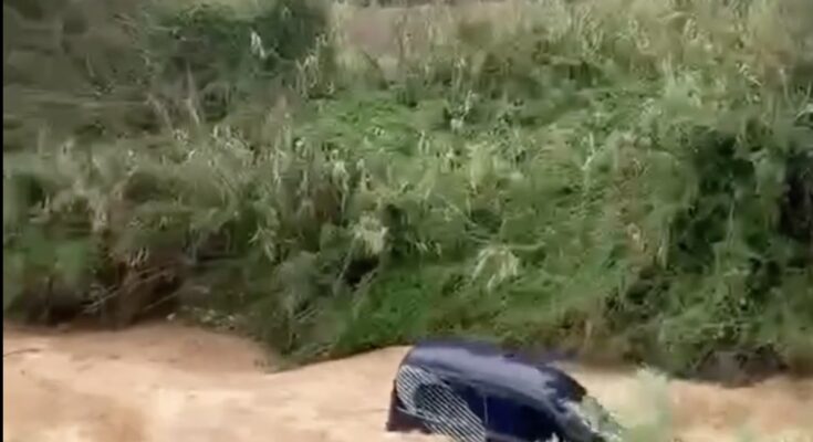Ισχυρή βροχόπτωση στη Λακωνία προκάλεσε υπερχείλιση ρέματος και παρέσυρε αυτοκίνητο κοντά στους Μολάους.